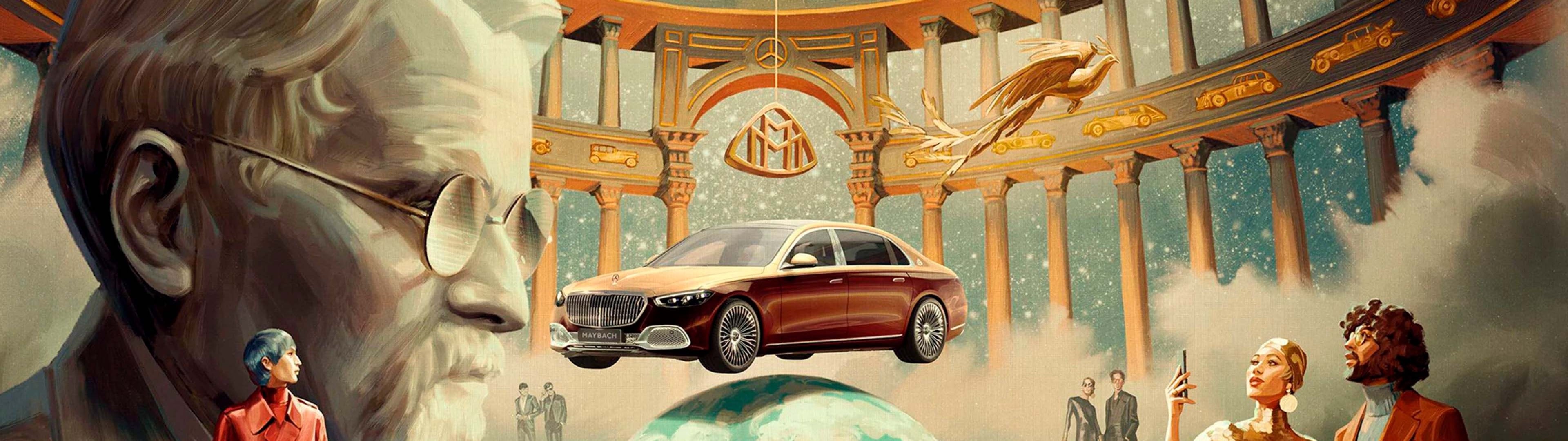 В 2021 году Maybach отметил столетие со дня выпуска первого серийного автомобиля и представил модель седана – Mercedes-Maybach S-Класс. В разработке рекламной кампании для этого автомобиля принял участие всемирно известный испанский художник Игнаси Монреаль. Рассказывая о процессе работы над кампанией под слоганом «Эпоха легенды продолжается», Монреаль отмечает, что он стремился придать Mercedes-Maybach по-настоящему легендарный облик. В материалах можно встретить изображение «муз», которые закладывают идею в голову Вильгельма Майбаха, и золотого феникса, который является отражением мифической ауры автомобиля и постоянного стремления к инновациям.