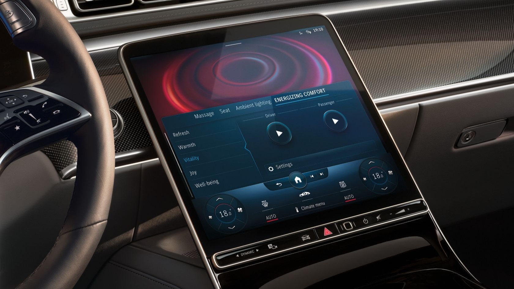 Светодиодная подсветка салона поддерживает хорошее самочувствие во время движения и является важной частью системы комфортного управления ENERGIZING, включающей индивидуальные программы расслабляющего или тонизирующего действия.