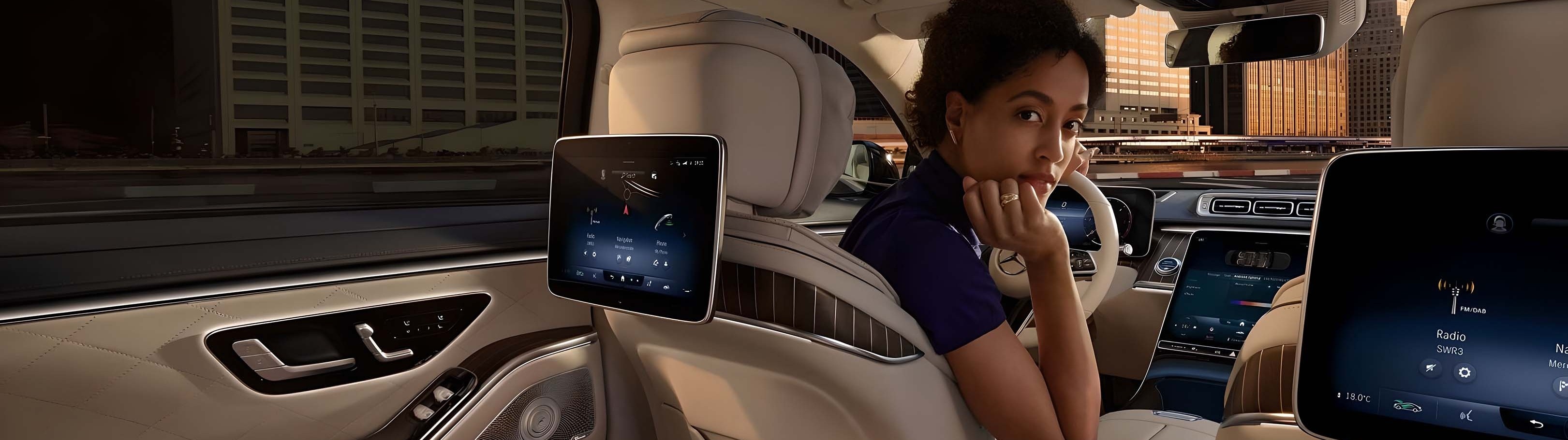 Испытайте настоящее наслаждение от движения в автомобиле с интеллектуальной информационно-развлекательной системой нового поколения MBUX. Большой проекционный дисплей на лобовом стекле отображает информацию о деталях поездки, технология дополненной реальности идеально сочетается с инновационной панелью приборов с 3D-экраном. Управляйте функциями голосом или с помощью центрального сенсорного OLED-экрана, давая возможность интеллектуальной информационно-развлекательной системе нового поколения MBUX узнавать ваши предпочтения и предугадывать команды.